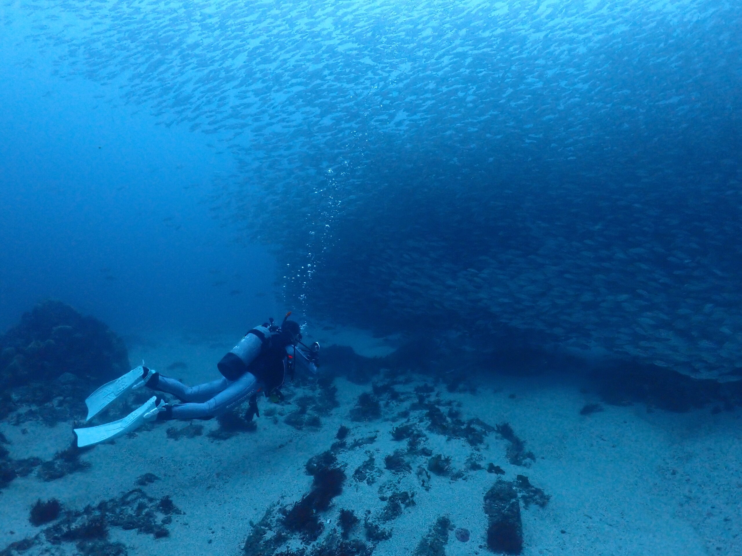 今日はラッキーな事にカンパチの群れにも遭遇っ!!しばらく僕たちの周りをグルグル遊んでました!